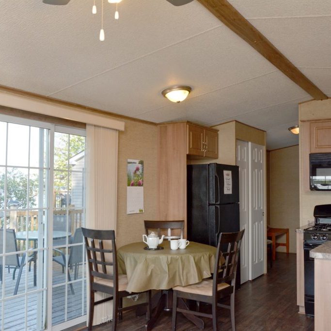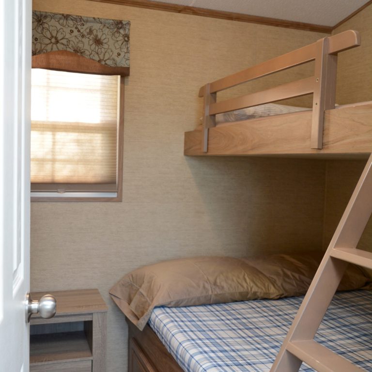 Details: 2 bedrooms, one with queen bed and the other with single-over-double bunk bed. Sofa bed in living room. 4-piece bath.