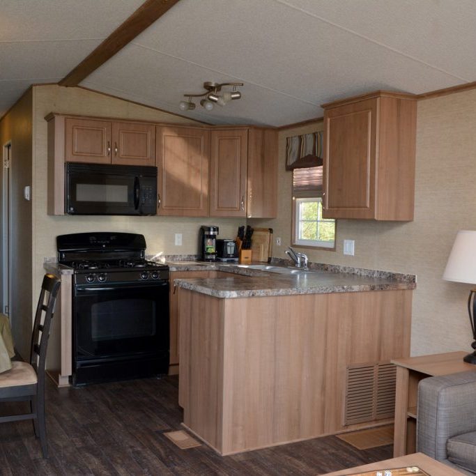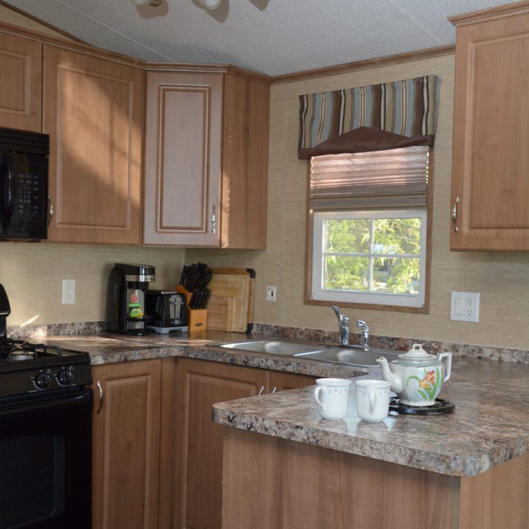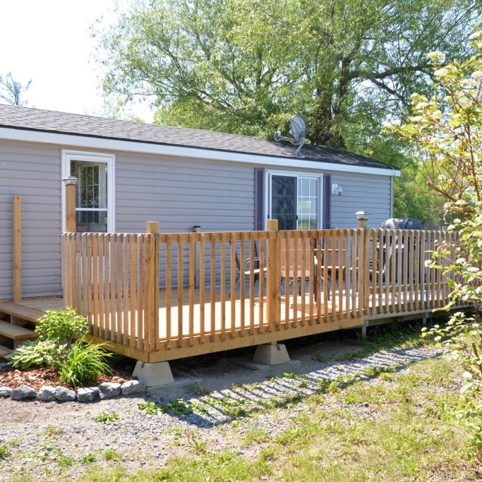 Equipped with: Full-size fridge, stove, microwave, pots & pans, dishes & cutlery, coffee-makers (drip and Keurig style), satellite TV, 4 blankets and 4 pillows. Also, propane bbq (propane supplied), campfire pit and 4 adirondack chairs. Non-smoking. Air conditioned.