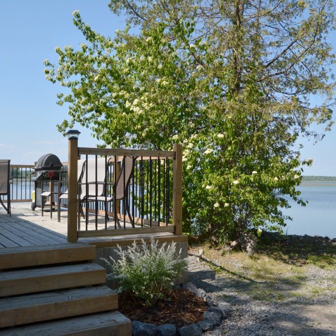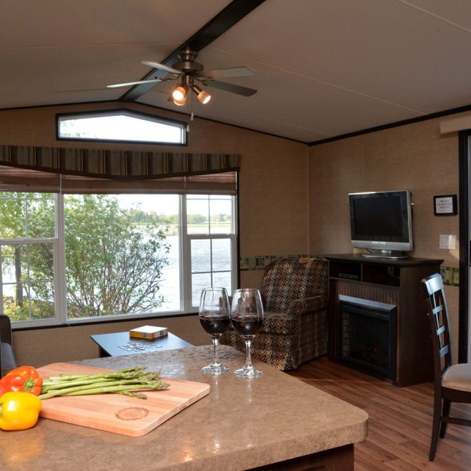 Equipped with: Full-size fridge, stove, microwave, pots & pans, dishes & cutlery, coffee-makers (drip and Keurig style), satellite TV, 4 blankets and 4 pillows. Also, propane bbq (propane supplied), campfire pit and 2 adirondack chairs. Non-smoking. Air conditioned.